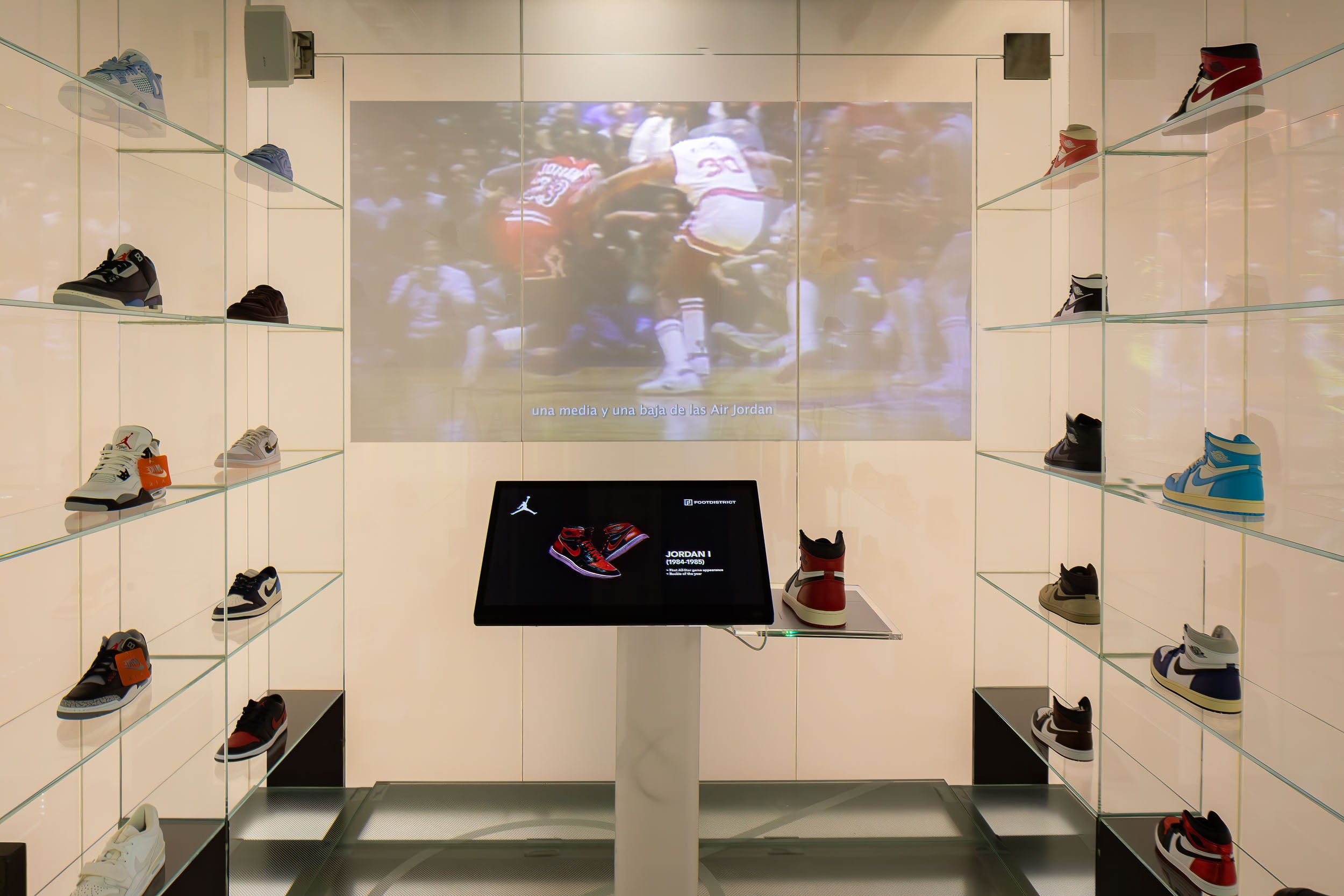 Assim que os membros da comunidade entram no cubo, podem escolher qualquer ténis disponível e embarcar numa viagem imersiva pelo legado de Jordan.